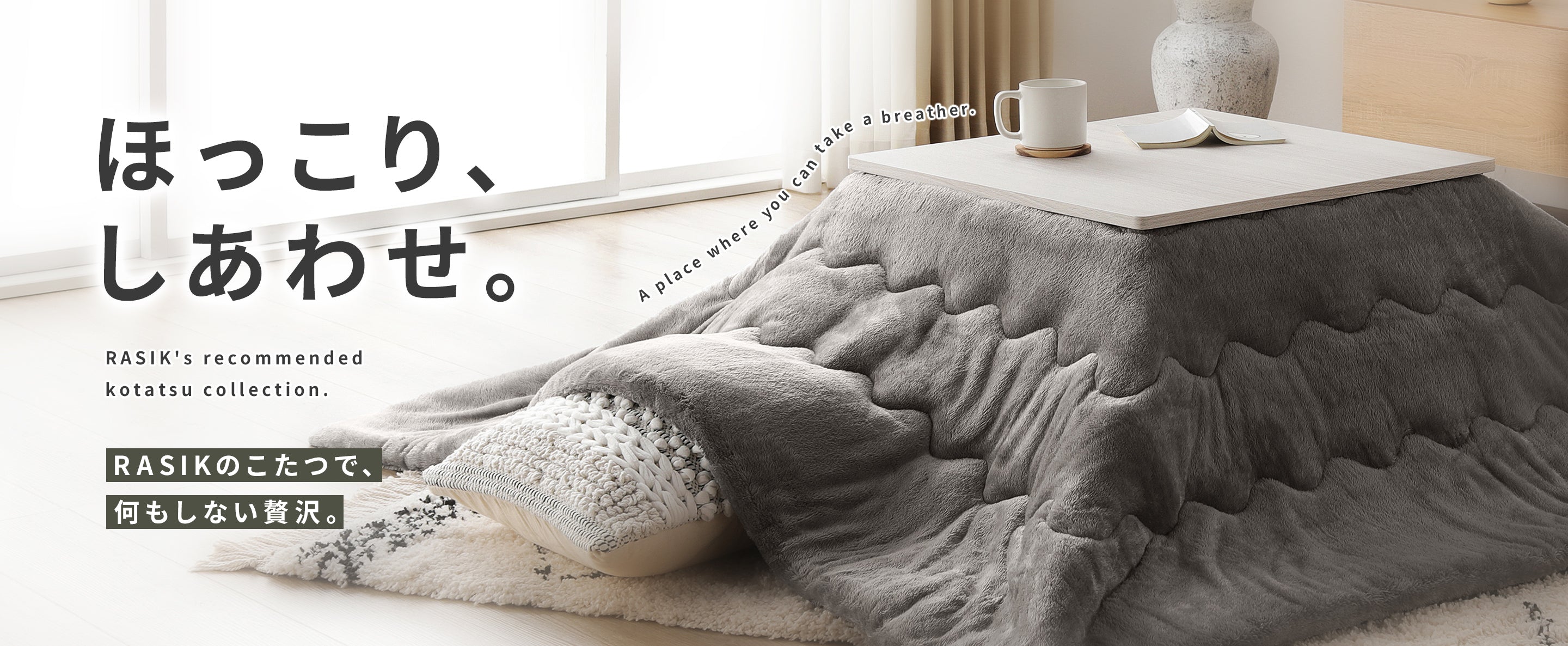フランネル こたつ掛け布団『toromofu トロモフ』2点セット(掛け布団・ラグ) 長方形 グレージュ