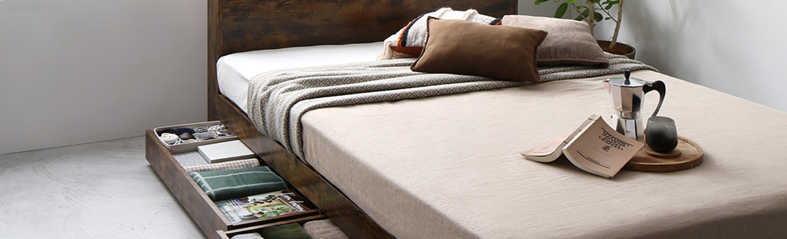 収納スペースを備えたベッドは、お部屋を広く使いたい方におすすめ。カントリー調やモダンテイスト、畳ベッドなど幅広いデザインの商品からお選びいただけます。