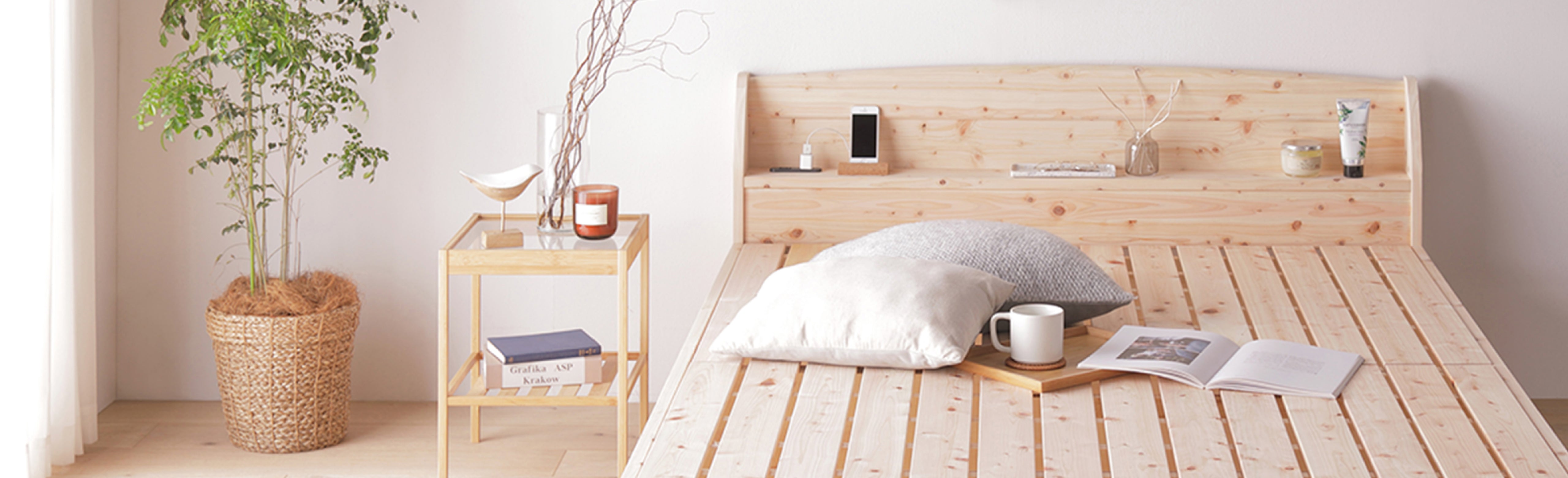 通気性に優れたすのこベッドは湿気の多い日本の気候にぴったり。天然木を使用した商品は、防虫・調湿効果が高いのも嬉しいポイントです。敷き布団を置ける商品もご用意しております。