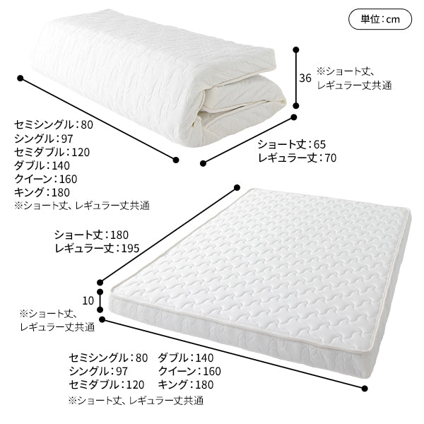 - セミダブル:(約)幅120cm×長さ195×高さ10cm