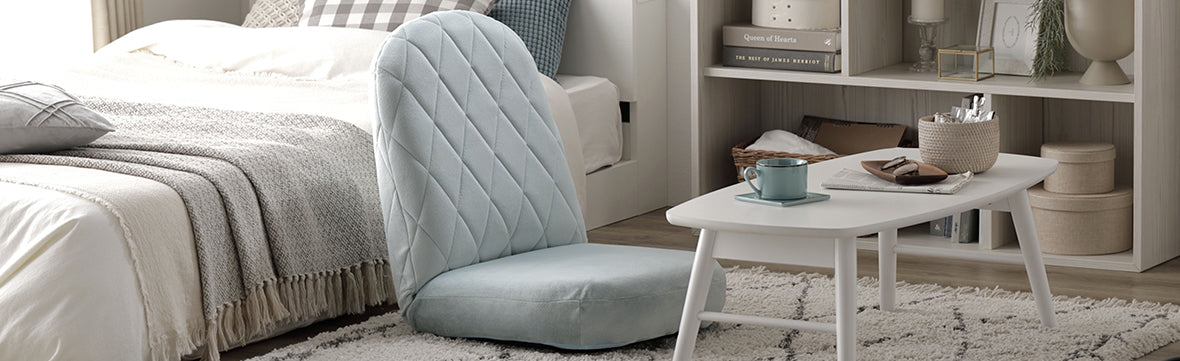 座椅子は、リビングのちょっとしたスペースや和室の腰掛けに使いやすいコンパクトなサイズ感が魅力。RASIKでは、リクライニング機能付きの商品もご用意しております。
