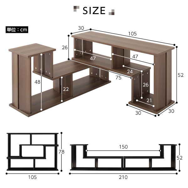 - (約)幅105×奥行30×高さ52cm(伸縮幅:(約)105〜210cm)