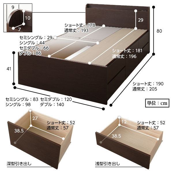 【お客様組み立て】日本製 引き出し5杯大容量ベッド(棚付き) ダークブラウン