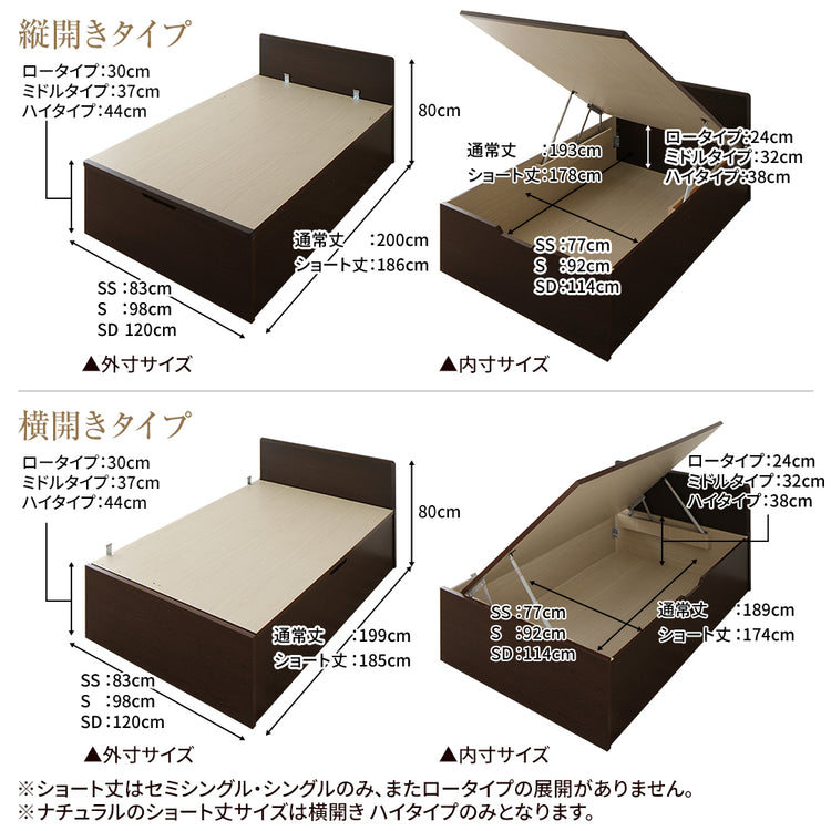 - ※ナチュラルのショート丈サイズは横開き ハイタイプのみとなります。