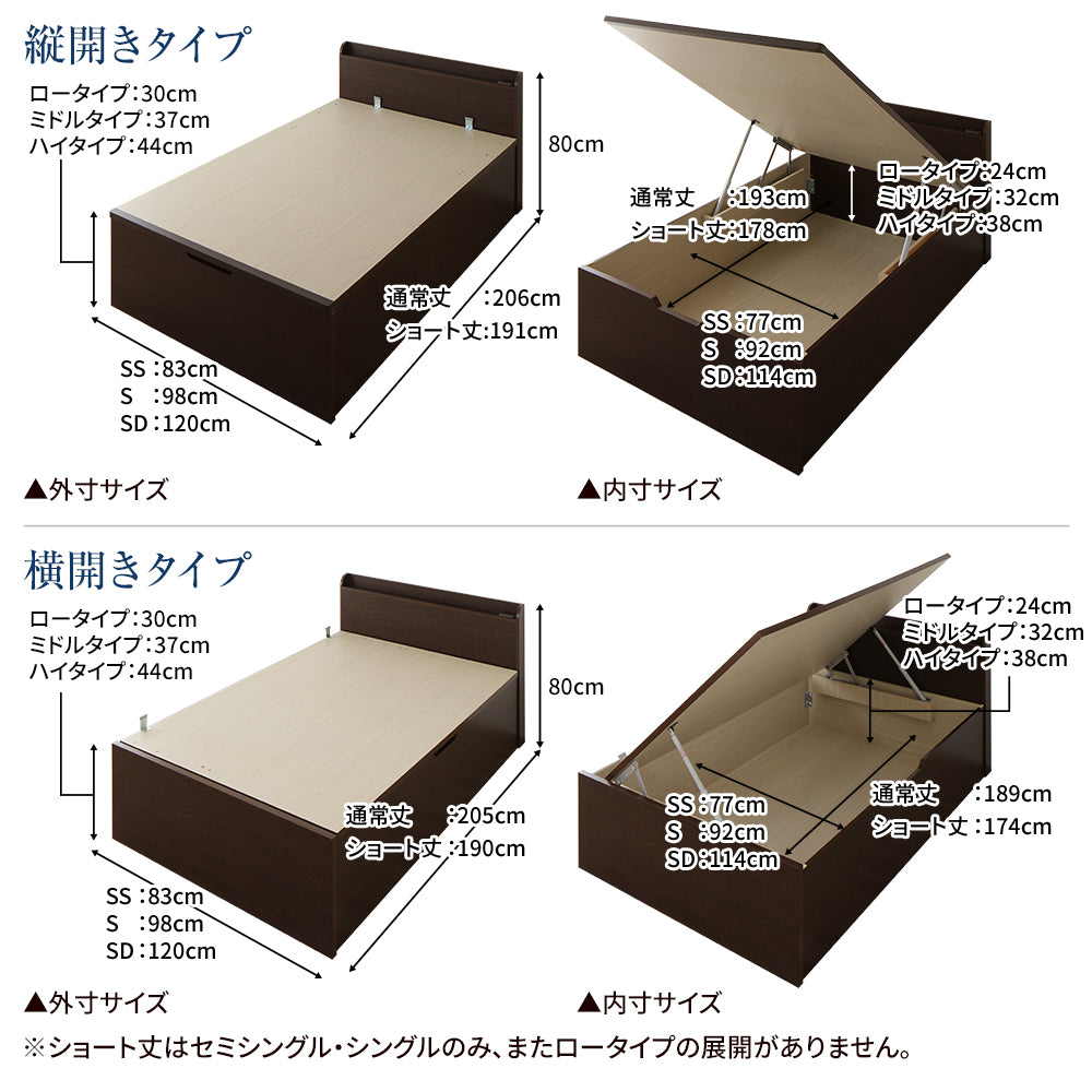 - ※ショート丈はセミシングル・シングルのみ、またロータイプの展開がありません。