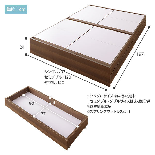 - シングルサイズは床板4分割、セミダブル・ダブルサイズは床板8分割になります。