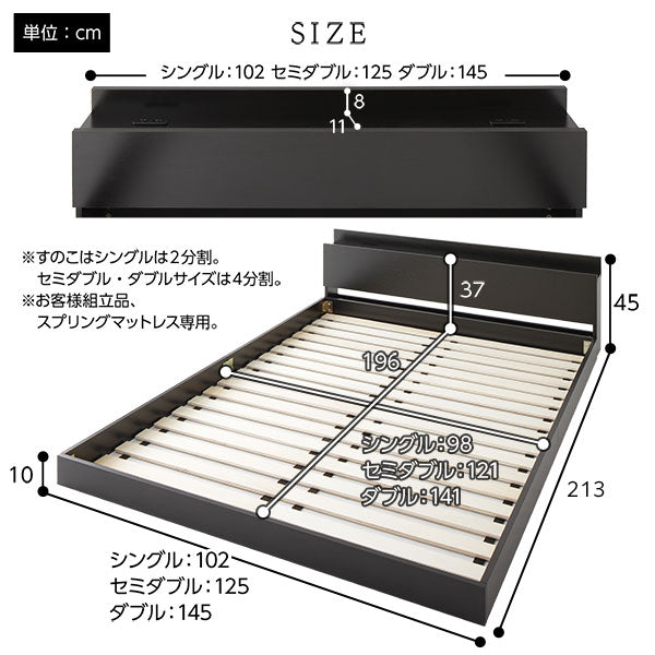 ベッドフレームには必ずスプリングマットレスを乗せてご使用ください。