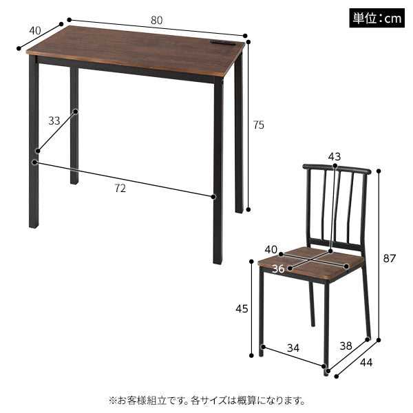 コンセント付き デスクチェアセット [幅80cm] ブラウン×ブラック