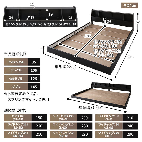 日本製 照明付き連結フロアベッド ブラック