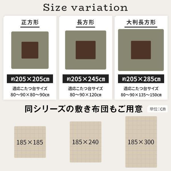 - (約)205×285cm(80~90×135~150cmのこたつ台に対応)