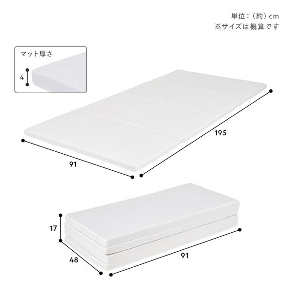 - (約)幅91×奥行195×高さ4cm・3.8kg(折りたたみ時:幅91×奥行48×高さ17cm)