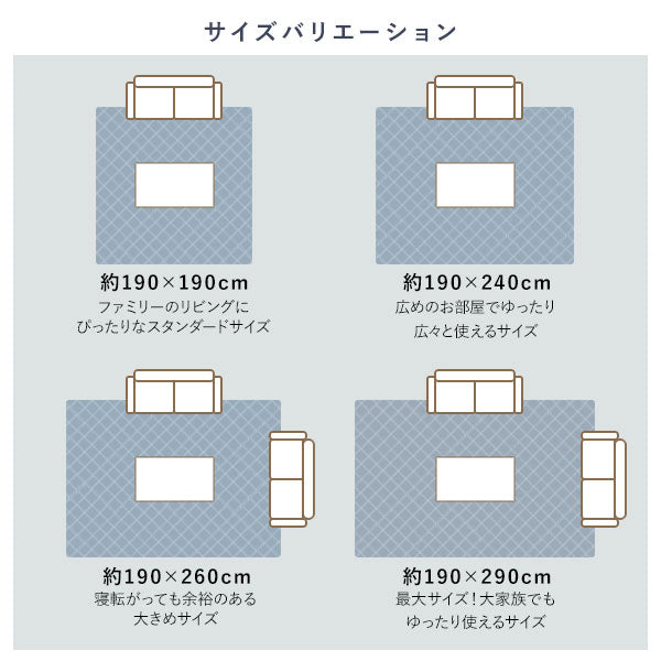 - ※こちらは『こたつ敷き布団ラグ 単品』の販売ページです。こたつテーブル、こたつ掛け布団は含まれません。