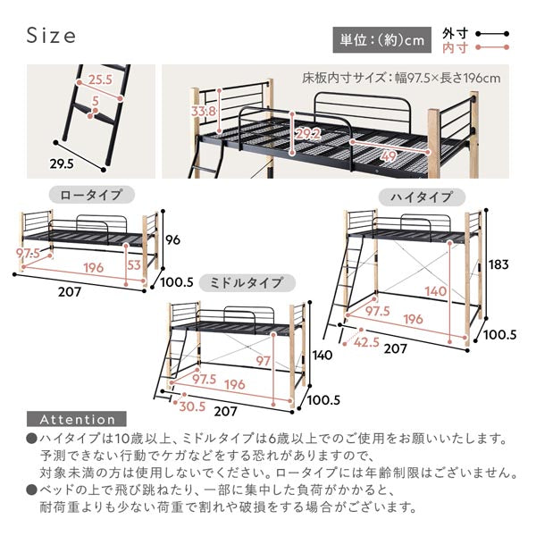 - 床板内寸サイズ(各タイプ共通):(約)幅97.5×長さ196cm