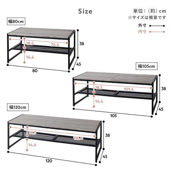 - 幅105cm:(約)幅105×奥行45×高さ38cm
