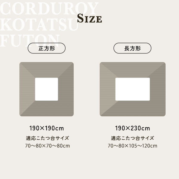 ボア付 コーデュロイ 薄掛けこたつ掛け布団 単品 ベージュ