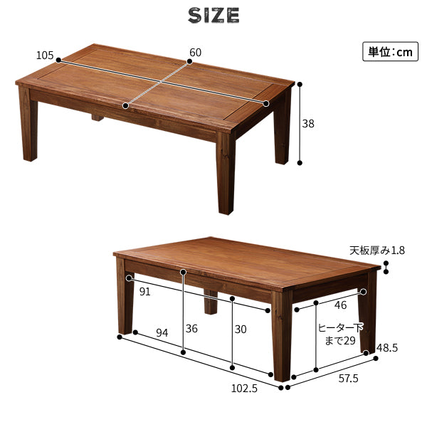 アカシア天然木 オイル仕上げ こたつテーブル 幅105cm 単品