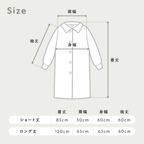 - ショート丈:(約)着丈85cm、肩幅50cm、身幅60cm、袖丈60cm