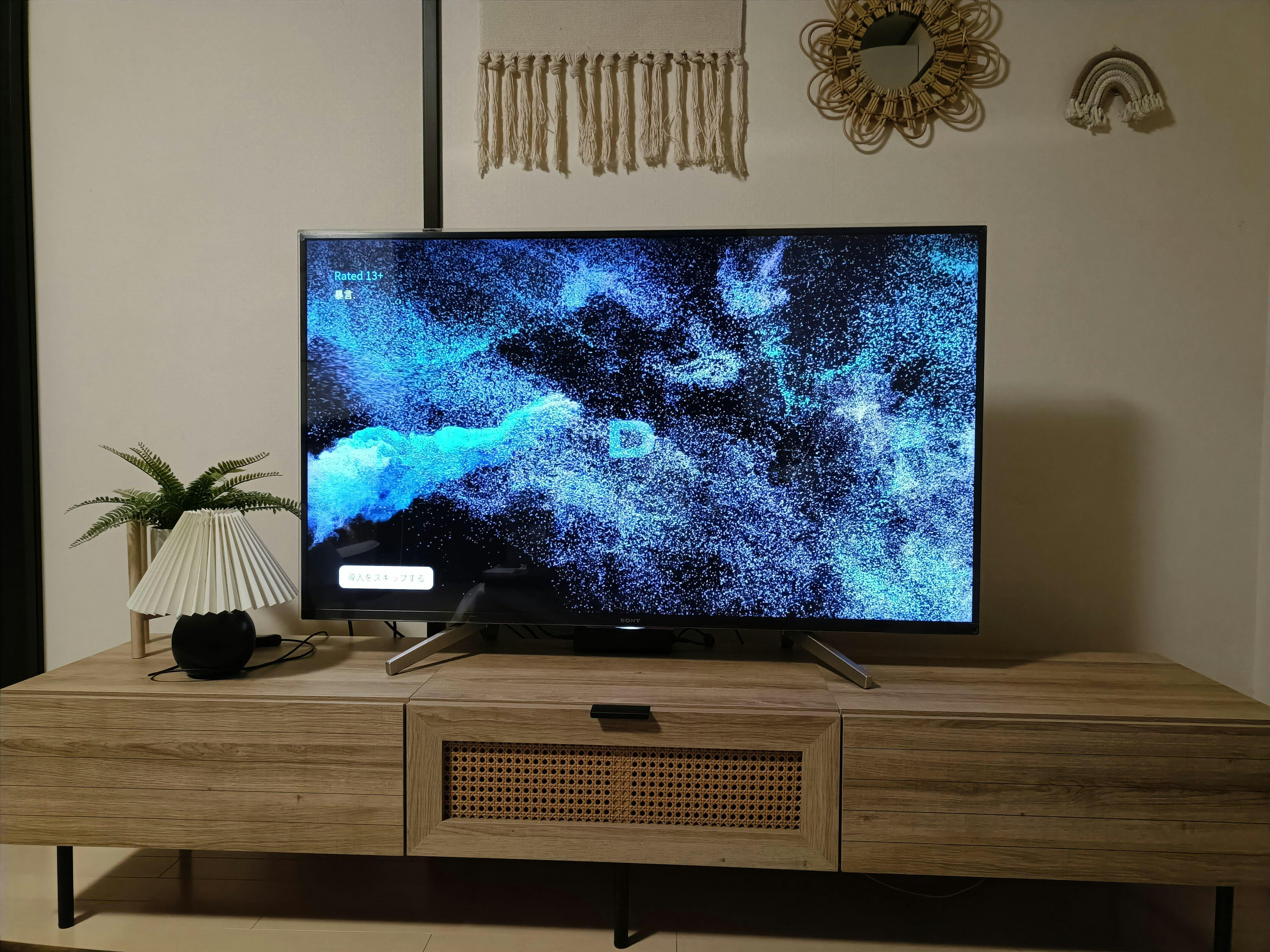 テレビの両脇にもスペースが生まれる余裕の広々サイズ