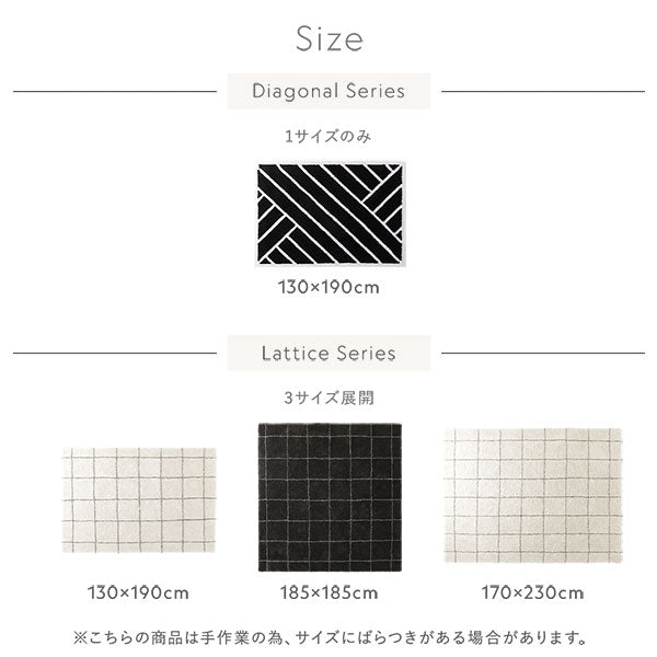 Latticeタイプはプリントではなく、違う色の糸を織り交ぜて柄を作り出した手の込んだラグです。