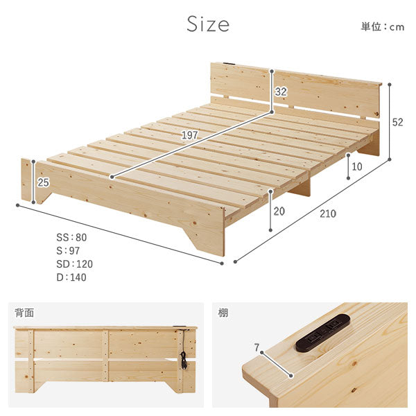 天然木 コンセント 棚付き フラットデザイン すのこベッド ロータイプ ホワイト