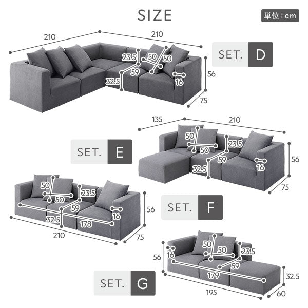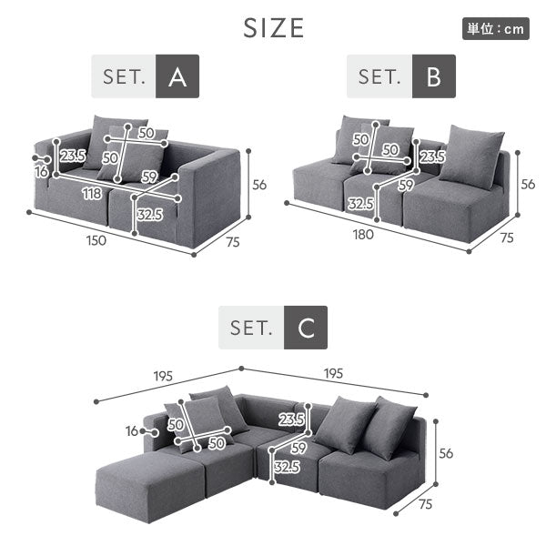 コーナー、1P、オットマンを自由に組み合わせて、