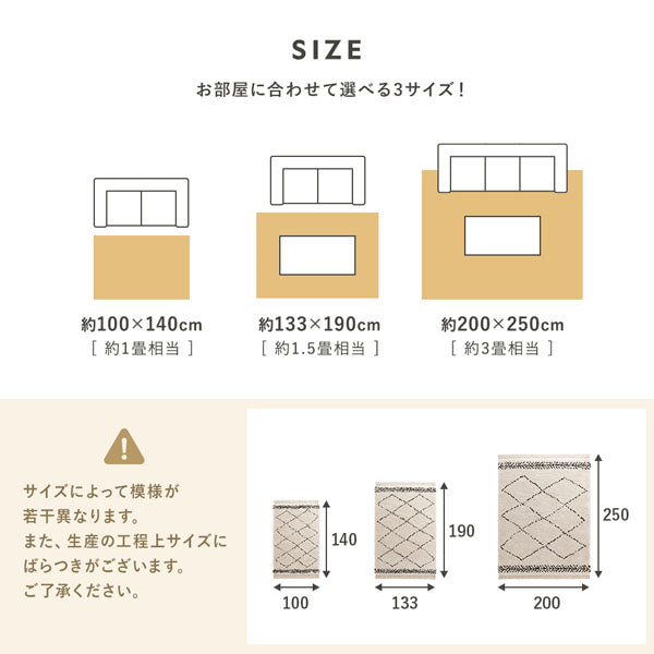 ナチュラルで異国情緒を感じるベニワレン柄のラグです。