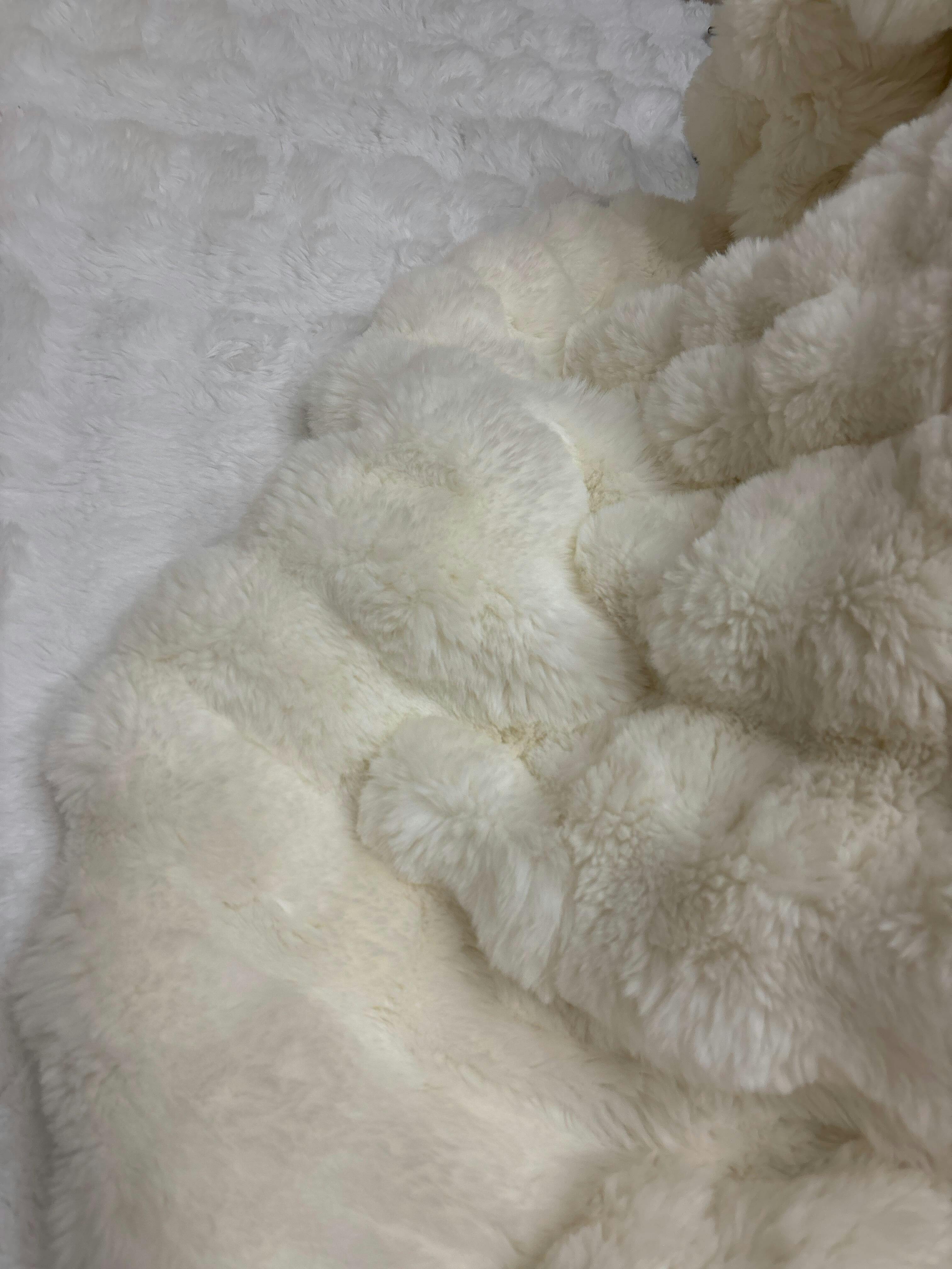 ラビットファー調の表面には、1~3cmのロングパイルを使用。