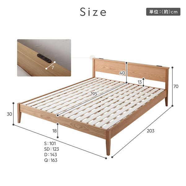ヘッドボードの高さは約70cm。厚めのマットレスを使用してもヘッドボードが隠れず木目の美しさを楽しめます。