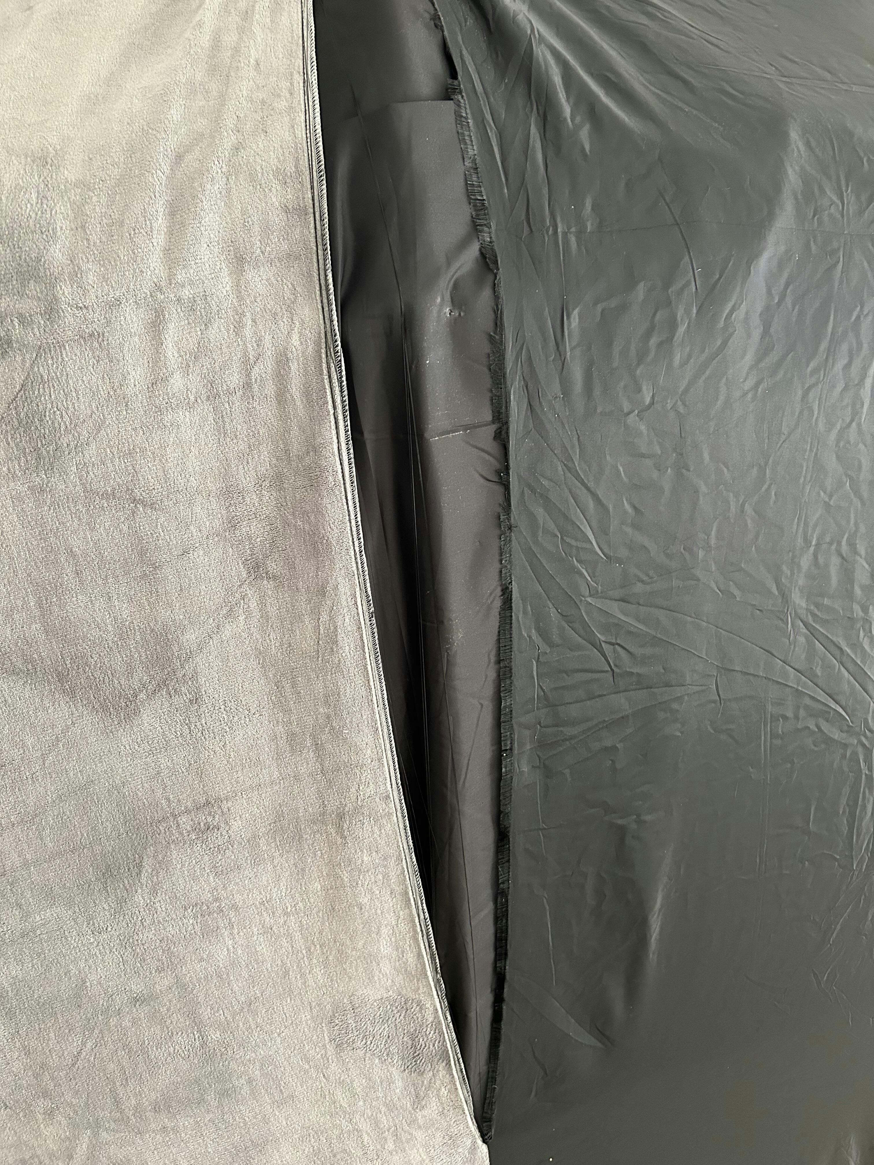 3.引っ張りながら、全体にカバーをかぶせ、ファスナーをしめます。