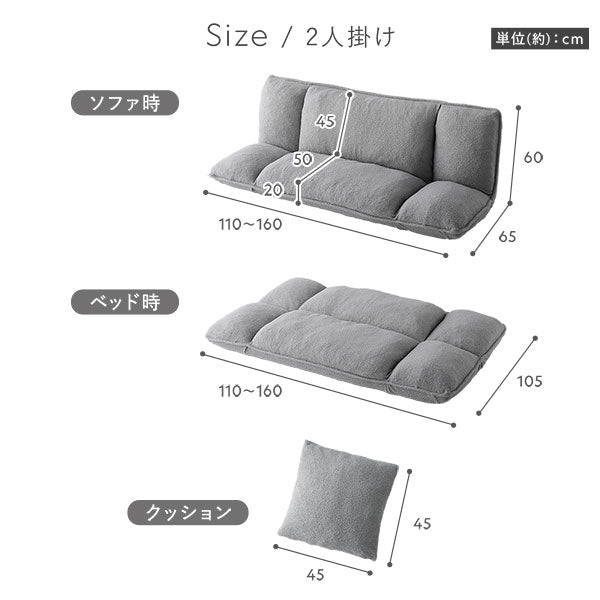 - ソファ時:(約)幅110〜160×奥行65〜105×高さ60cm(座面高:20cm)
