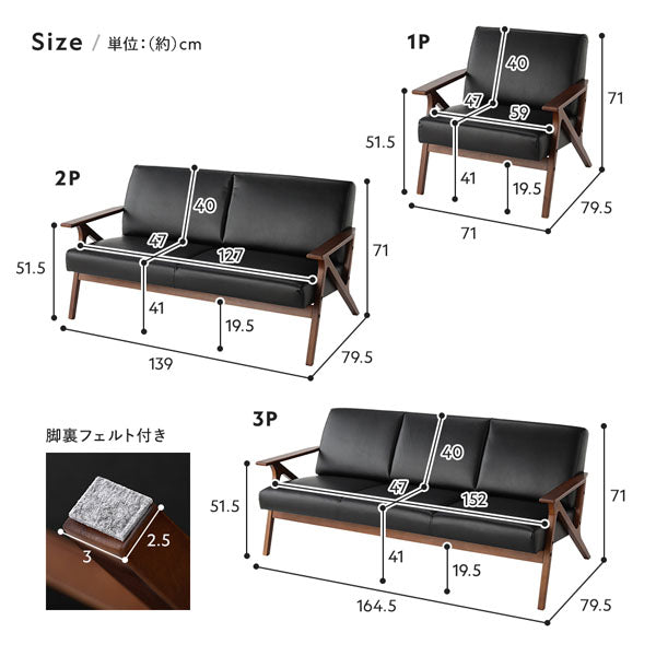 - 3人掛け:(約)幅164.5×奥行79.5×高さ71cm(座面高:41cm)