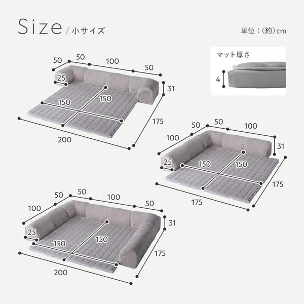 - Bタイプ(クッションL型):(約)幅175×奥行175×高さ31cm