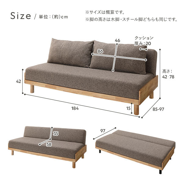 - ソファ時:(約)幅184×奥行85〜97×高さ42〜78cm