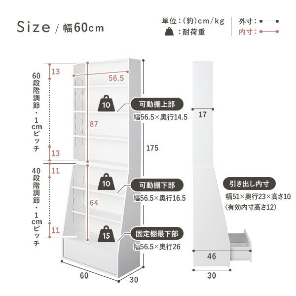 - ハイタイプ 60cm幅:(約)幅60×奥行30×高さ175cm・25.5kg